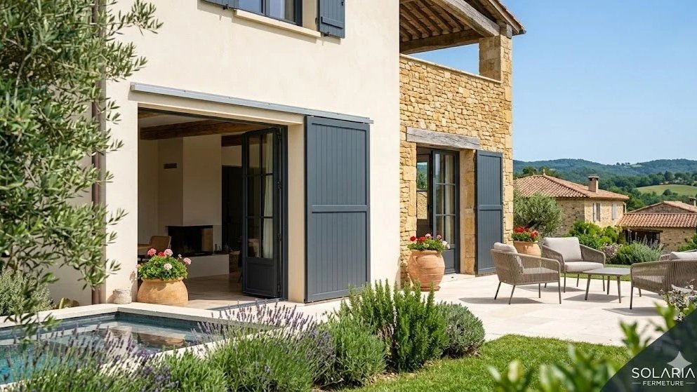 Alliez le cachet traditionnel à la performance moderne avec les volets battants, coulissants et persiennes de Solaria Fermeture.